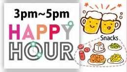 “Happy Hour” will be held on Fridays, Saturdays, and Sundays from 3pm to 5pm! A variety of snacks and beer will be served.